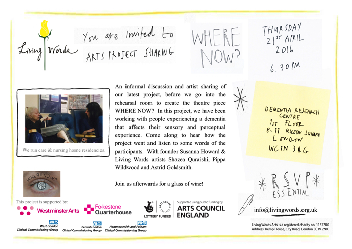 Artist sharing – 21st April. Dementia Research Centre.
