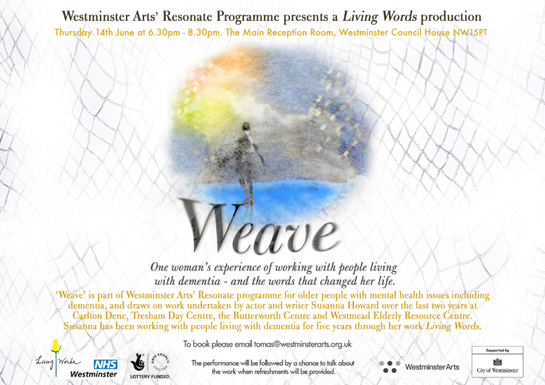 Performance of work-in-progress WEAVE as part of London Creativity and Wellbeing Week on Thurs 14th June 2012 6.30pm.